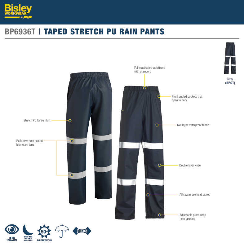BISLEY- Taped Stretch PU Rain Pants (BP6936T) – NAVY