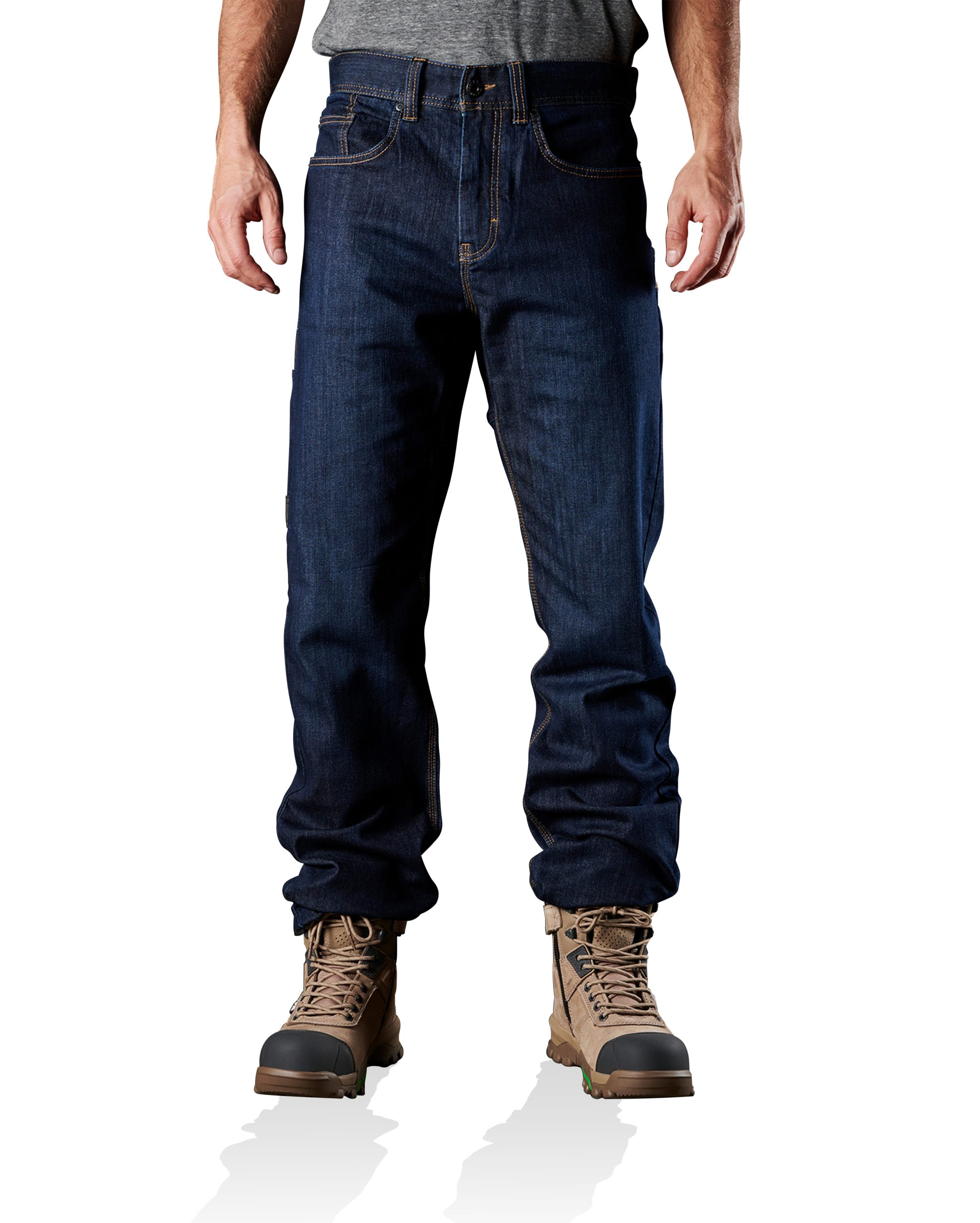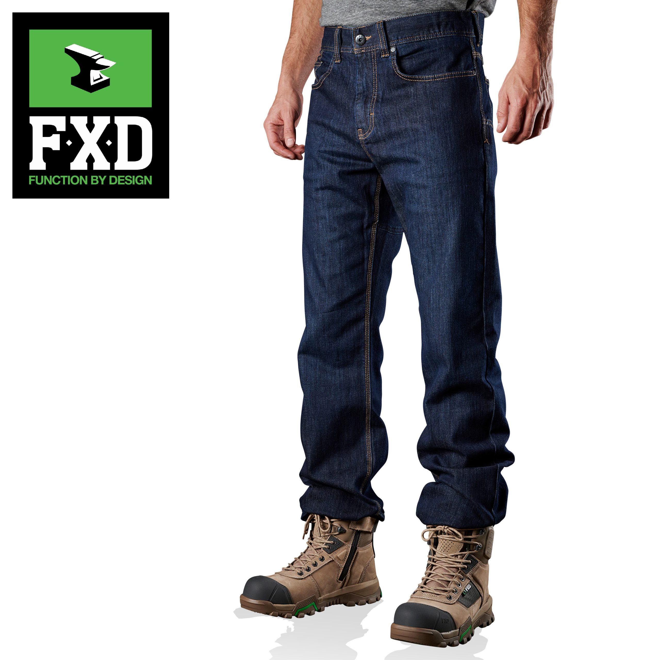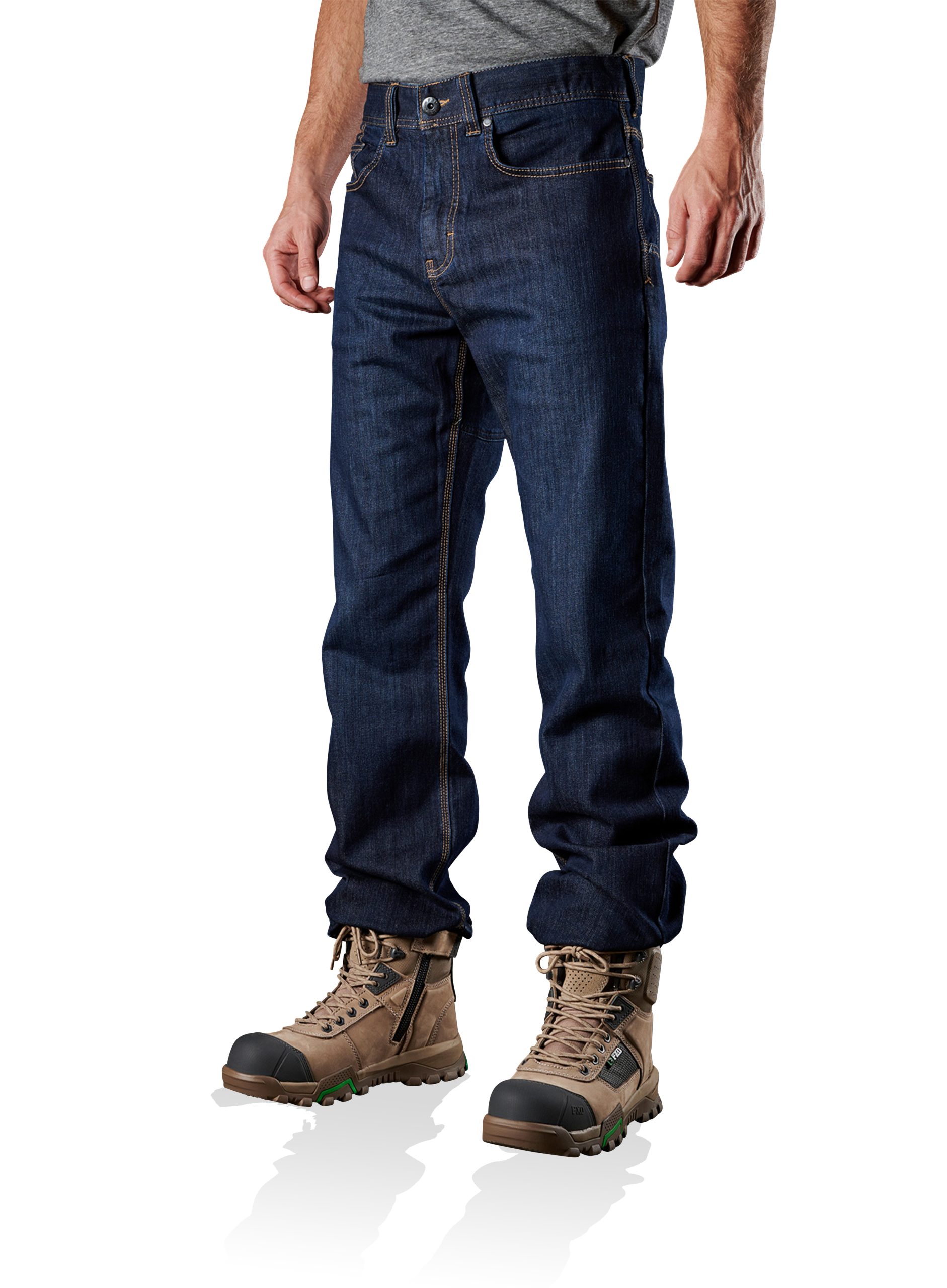 FXD WD.2 Original Work Denim (without kneepads) in Indigo Stomp Wash are made from 10.5 ounce (356 GSM) S-Gene® Denim from Cone Denim™ mills in North Carolina, USA. Cone denim™ have been a world leader in denim innovation from their American heritage based mills in Greensboro North Carolina since 1891. The FXD WD.2 Original Work Denim (without kneepads) features DURA500™ Advanced Nylon and Polyurethane Canvas abrasion panels. DURA500™ is a 500 denier nylon oxford treated with polyurethane for high tensile strength and performance durability. DURA500™ provides long-lasting enhanced tear and abrasion resistance.