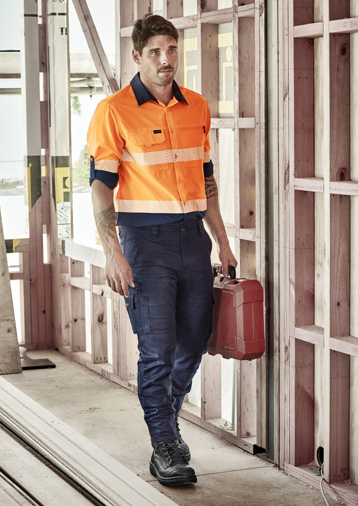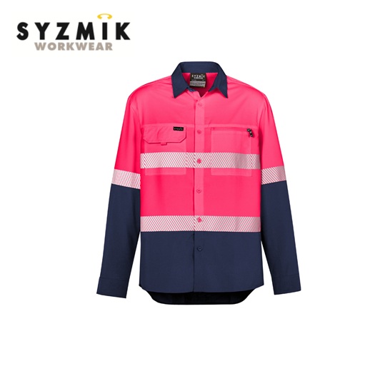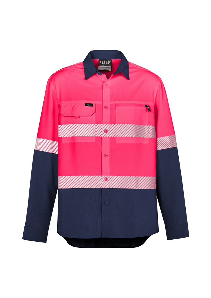 SYZMIK – Mens Hi Vis Outdoor Segmented Tape Long Sleeve Shirt (ZW470) – PINK/NAVY, YELLOW/NAVY OR ORANGE/NAVY